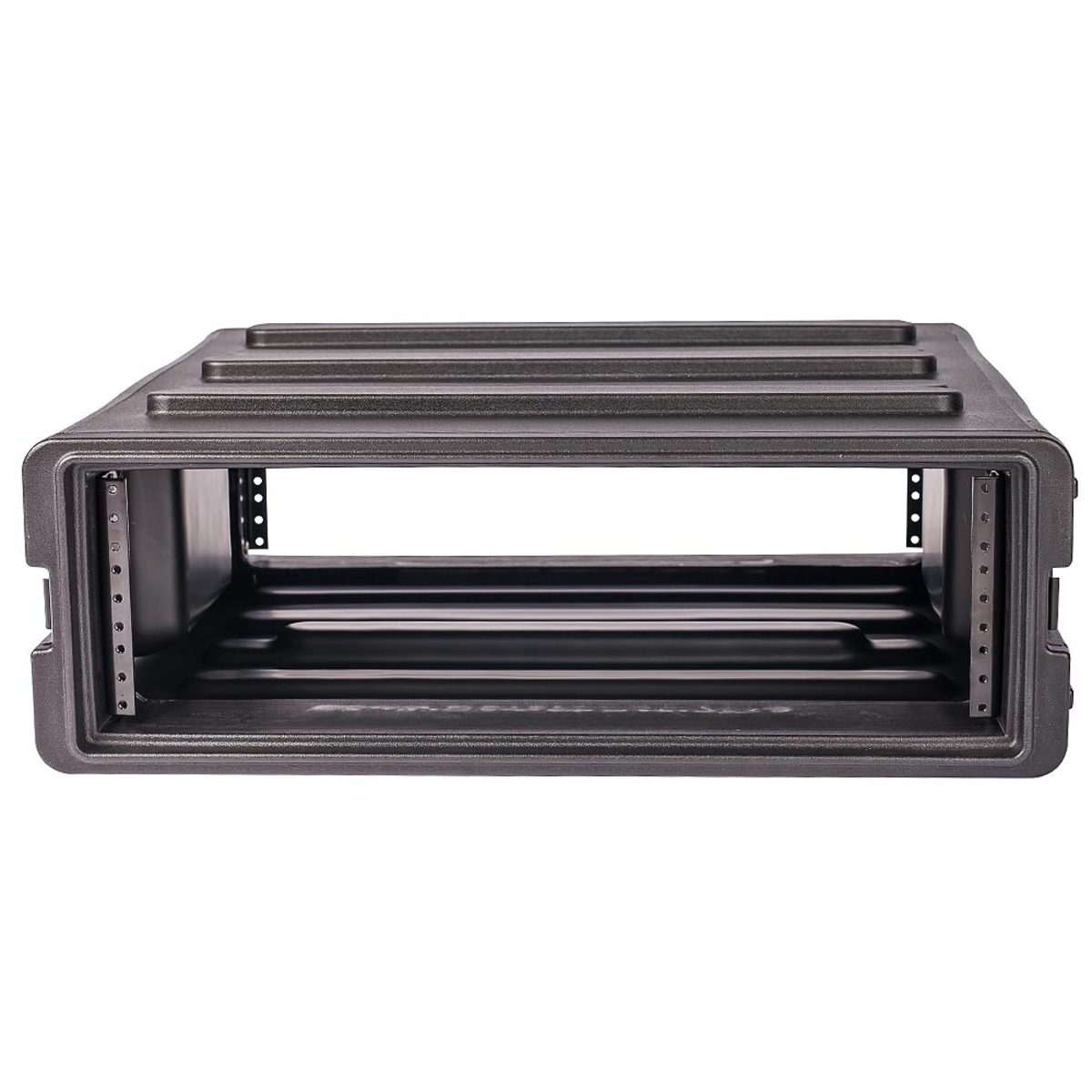SKB Roto Racks also come standard with steel Mil-Spec black twist latches which are recessed for extra durability and longevity, new heavy-duty flush handles, and front and rear rack rails with a rack depth of 17.6” (44.7cm).