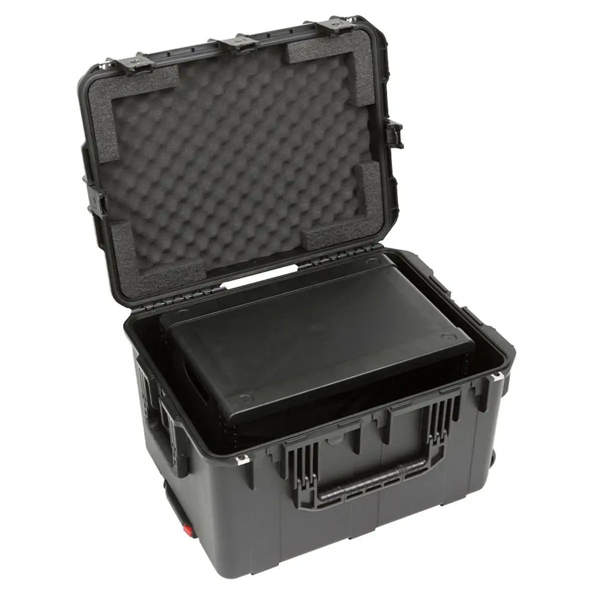 SKB iSeries Injection Molded Mil-Standard Waterproof Cases are molded of ultra high-strength polypropylene copolymer resin, featuring a gasket-sealed, water and dust tight, submersible design (MIL-C-4150J / IP67). Other standard features include a molded-in hinge, patented trigger release latch system, comfortable, snap-down rubber over-molded cushion grip handle, automatic ambient pressure equalization valve (MIL-STD-648C), and resistance to UV, solvents, corrosion, fungus and impact damage (MIL-STD-810F.