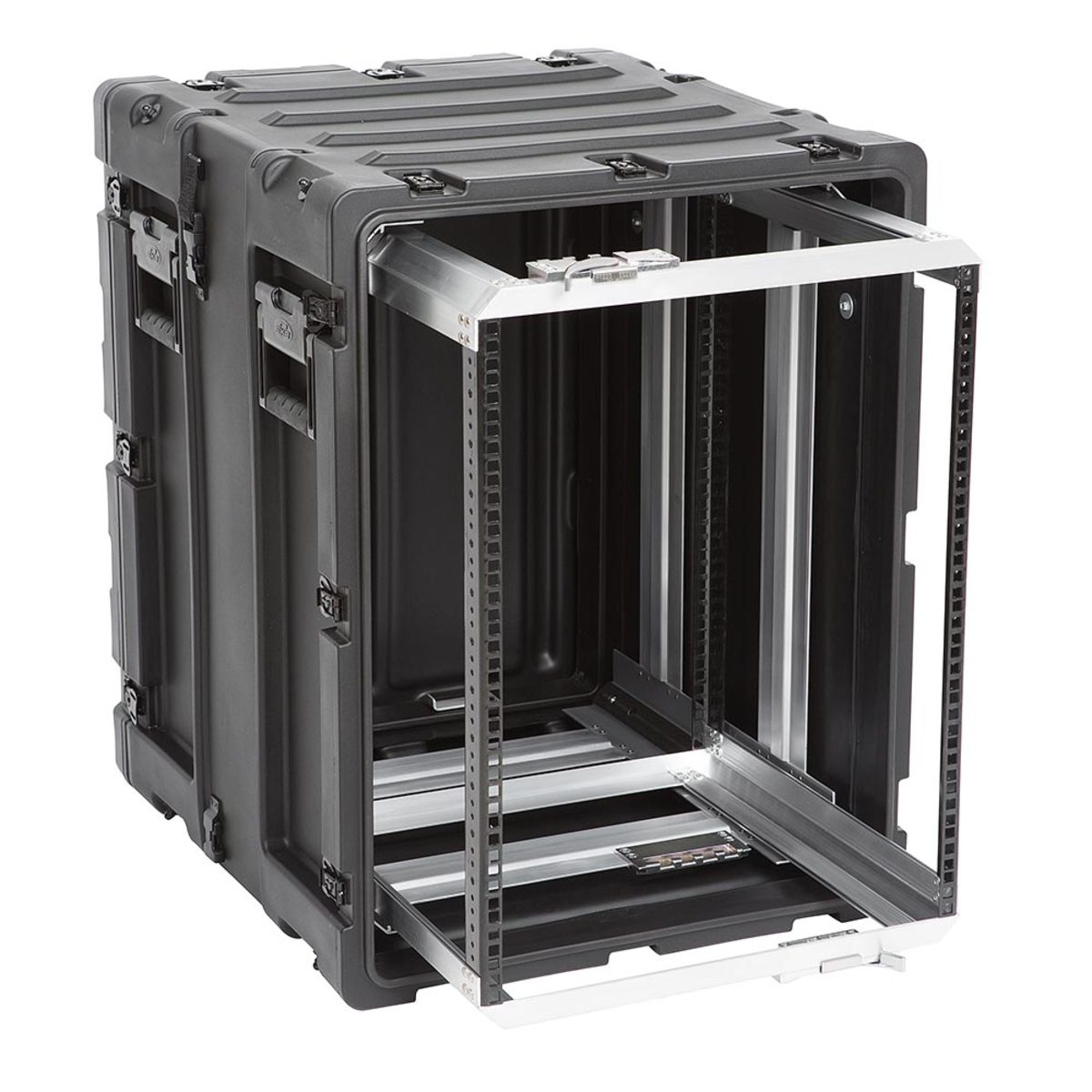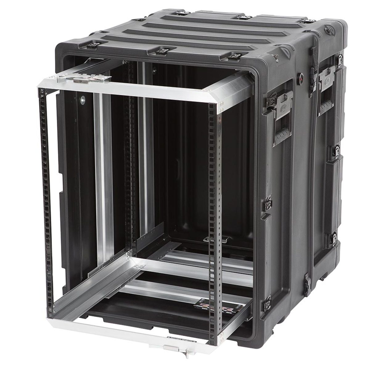 The SKB 3RR Series represents the pinnacle of our rack cases. These shock rack cases are tougher, lighter, stronger and better than any other rack case out there in the market. The removable rack option saves time and money by eliminating the hassle of dealing with cables and screws in small, limited spaces—just take the rack out, change the equipment, and slide the rack in again.