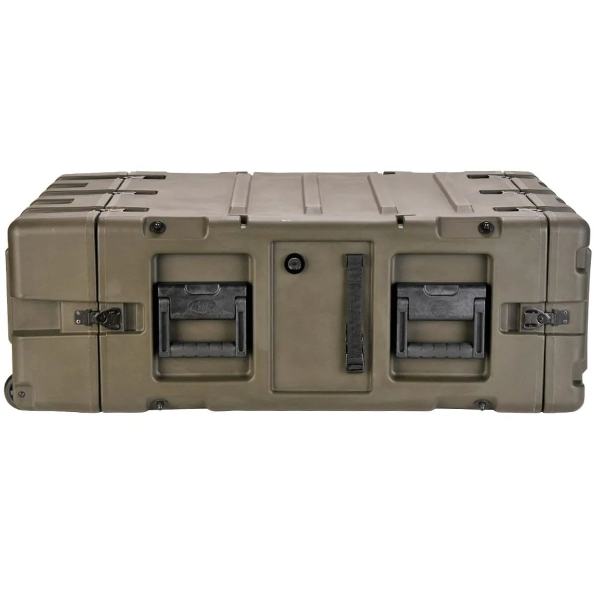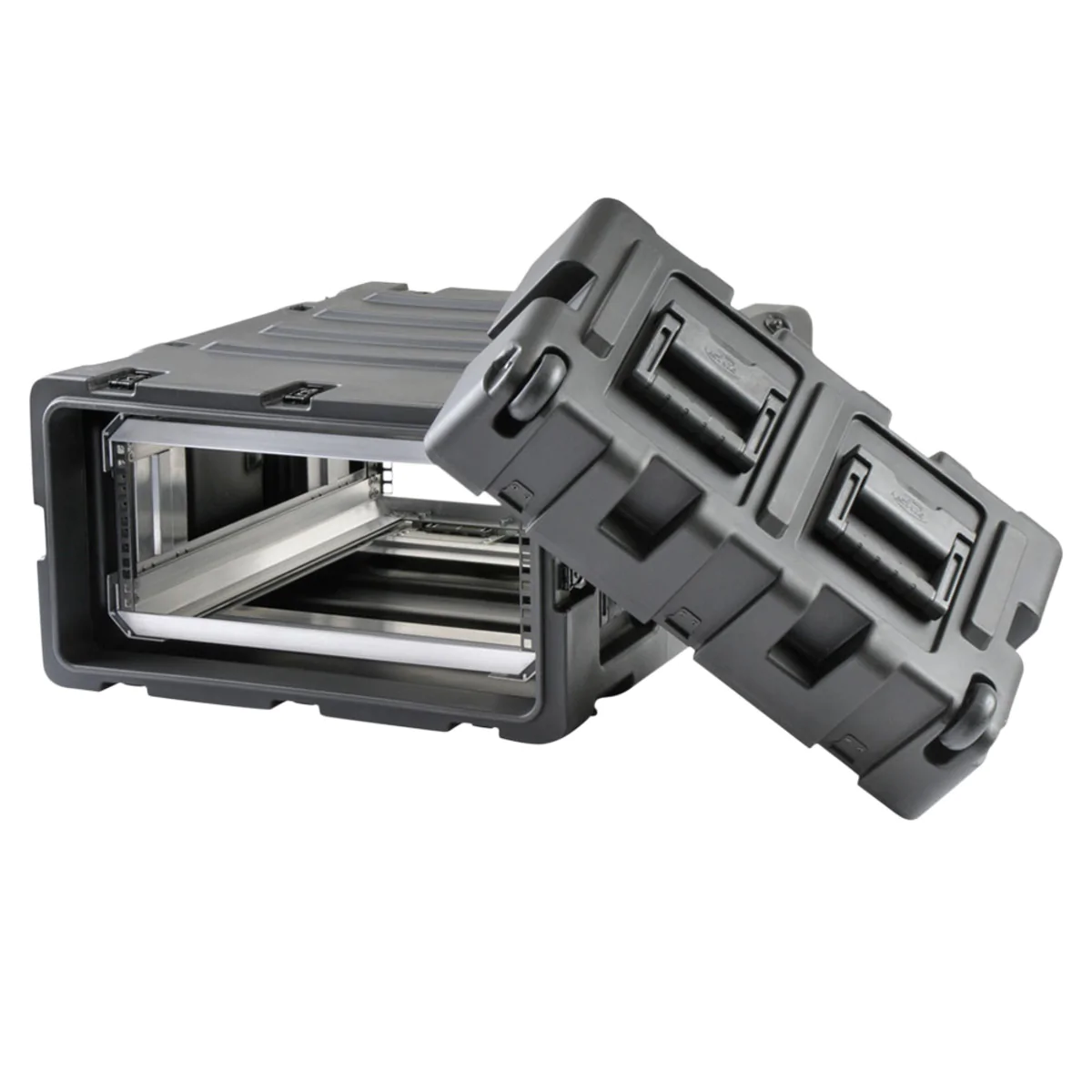 The 4U SKB 3RR-4U24-25M represents the pinnacle of SKB IP67 watertight 19″ rack cases. These shock rack cases are tougher, lighter, stronger and better than any other rack case out there in the market. The removable rack option saves time and money by eliminating the hassle of dealing with cables and screws in small, limited spaces—just take the rack out, change the equipment, and slide the rack in again.